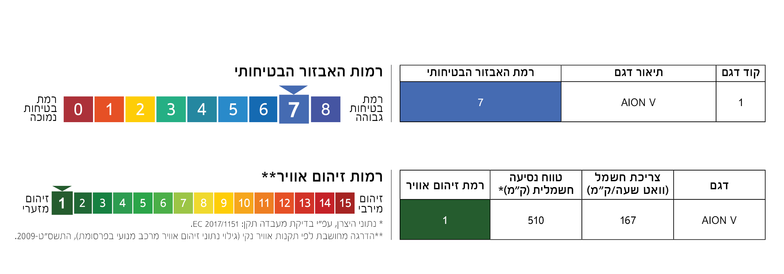 מותג AION מציג את AION V – רכב SUV חשמלי עוצמתי, חכם ומרווח. עם טווח נסיעה מרשים של עד 510 ק"מ בטעינה אחת, המוביל בקטגוריה, וטעינה מהירה במיוחד של 30%–80% בכ־18 דקות בלבד, AION V מציע חופש אמיתי. מנוע בהספק מירבי של 204 כ"ס מאיץ מ־0 ל־100 קמ"ש ב־7.9 שניות, ומעניק תחושת עוצמה ובטחון בכל נסיעה. AION V מצטיין בנוחות מרבית לכל המשפחה, עם תא מטען ענק בנפח של עד 1,600 ליטרים (ספסל אחורי מקופל), מושבים קדמיים עם חימום ואוורור, פתיחת תא מטען חשמלית ועוד. בכל הקשור לבטיחות, איון V זכה לדירוג חמישה כוכבים במבחני הבטיחות של Euro NCAP ומציע 13 מערכות בטיחות מתקדמות, 7 כריות אוויר ומבנה מרכב קשיח. על כל אלה מתווספת אחריות יצרן כפולה – 8 שנים על הרכב והסוללה – מהטובות בשוק.